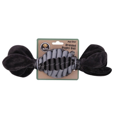 - 57029 - Dog Toy Blitz Braided Rugby Ball Grey - S