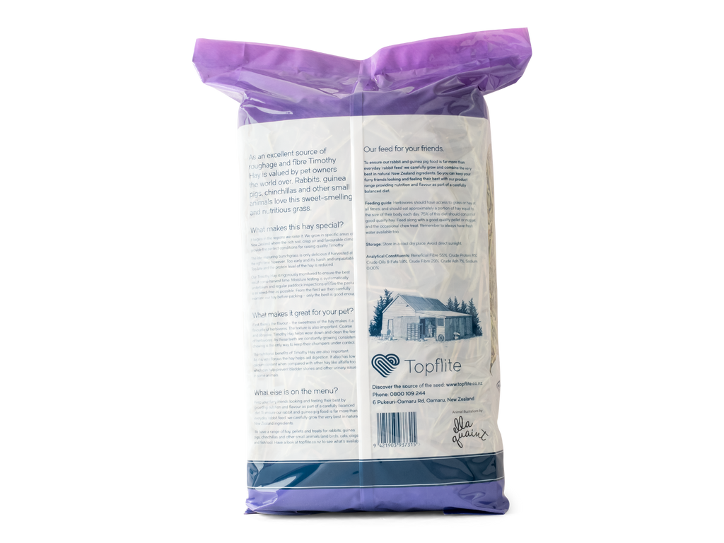 Our large-in-size, good-in-value, great-in-nutrition Timothy Hay is carefully grown in New Zealand’s south before being tested and packed to ensure the very best result for your rabbits, guinea pigs, and other happy herbivores.